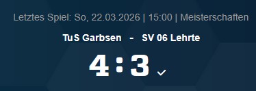 Bezirksliga Hannover Staffel 2: TuS Garbsen – SV 06 Lehrte, 4:3 (1:3)