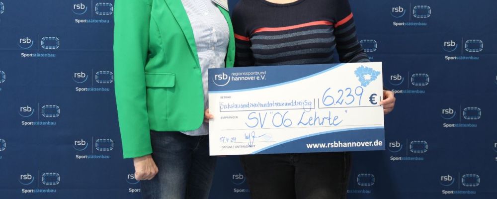 Scheck über 6.293,00 Euro für den SV 06 Lehrte e.V.