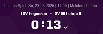 1. Kreisklasse Region Hannover St.1: TSV Engensen – SV 06 Lehrte II, 0:13 (0:7)