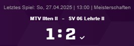 1. Kreisklasse Region Hannover St.1: MTV Ilten II – SV 06 Lehrte II