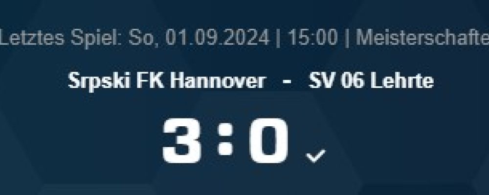 Kreisliga Region Hannover Staffel 1: Srpski FK Hannover – SV 06 Lehrte, 3:0 (2:0),