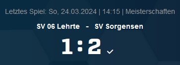 Kreisliga Region Hannover Staffel 1: SV 06 Lehrte – SV Sorgensen, 1:2 (0:2),