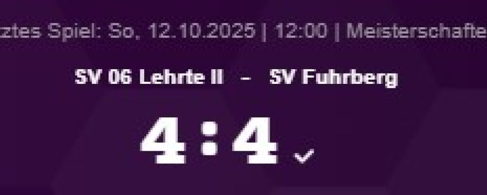 1. Kreisklasse Region Hannover St.1: SV 06 Lehrte II – SV Fuhrberg, 4:4 (1:3