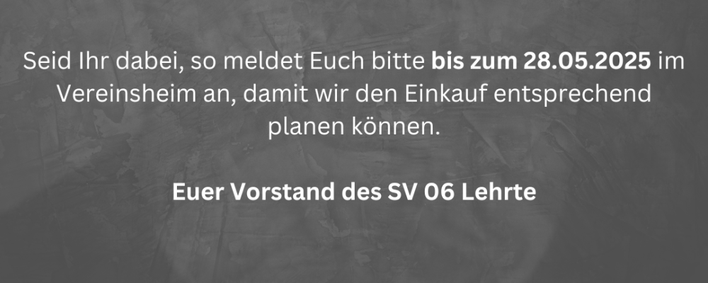 Am Sonntag, den 01.06.2024 ab 17.30 Uhr wollen wir gemeinsam mit unseren Frauen- und Herrenteams, mit allen Trainern und Betreuern des Vereins, unseren Fans sowie unseren Mitgliedern bei Bier, Kaltgetränk und Bratwurst die Saison 24/25 Revue passier…