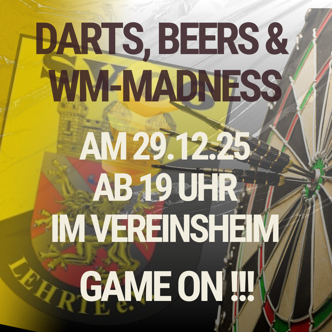 Am 29.12.2025 heißt es bei uns: Game on! Ab 19 Uhr werfen wir im Vereinsheim des SV 06 Lehrte ein paar Pfeile und schauen gemeinsam die 3. und 4. Runde auf dem Weg in die Achtelfinals der Darts WM. 📺🔥