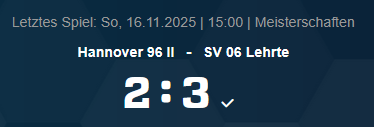 AOK-Frauenmeisterschaft Niedersachsen Ost: Hannover 96 II – SV 06 Lehrte, 2:3 (1:1)