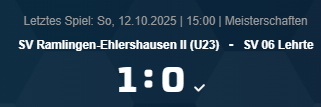 SV Ramlingen-Ehlershausen II (U23) – SV 06 Lehrte 1:0 (0:0)