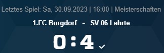 Kreisliga Region Hannover Staffel 1: 1.FC Burgdorf – SV 06 Lehrte, 0:4 (0:3)