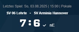 In der ersten Runde des Bezirkspokals bezwang der SV06 den SV Arminia Hannover aus der Landesliga mit 7:6 n. E.