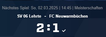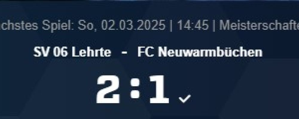 Kreisliga Region Hannover Staffel 1: SV 06 Lehrte – FC Neuwarmbüchen, 2:1 (1:0)