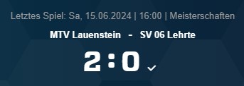 Relegation BL/KL Grp B: MTV Lauenstein – SV 06 Lehrte 2:0, (1:0)