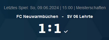 Kreisliga Region Hannover Staffel 1: FC Neuwarmbüchen – SV 06 Lehrte 1:1 (0:0),