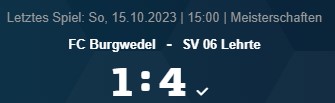 11 Spieltag: FC Burgwedel – SV 06 Lehrte, 1:4 (1:1), Burgwedel