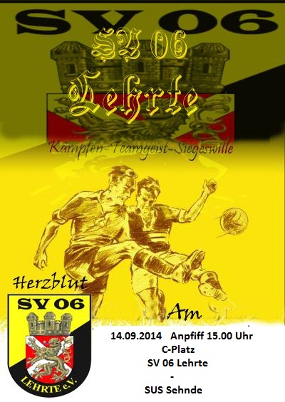 Am Sonntag den 14.09.2014 kommt es zum Topspiel der Kreisliga zwischen dem SUS Sehnde und unserer 1. Herren. Anpfiff der Partie ist um 15.00 Uhr in der neuen „06 –Arena“ hinter dem Sportheim.