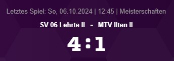 1. Kreisklasse Region Hannover St.1: SV 06 Lehrte II – MTV Ilten II 4:1