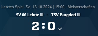 SV 06 Lehrte III : TSV Burgdorf III 2:0