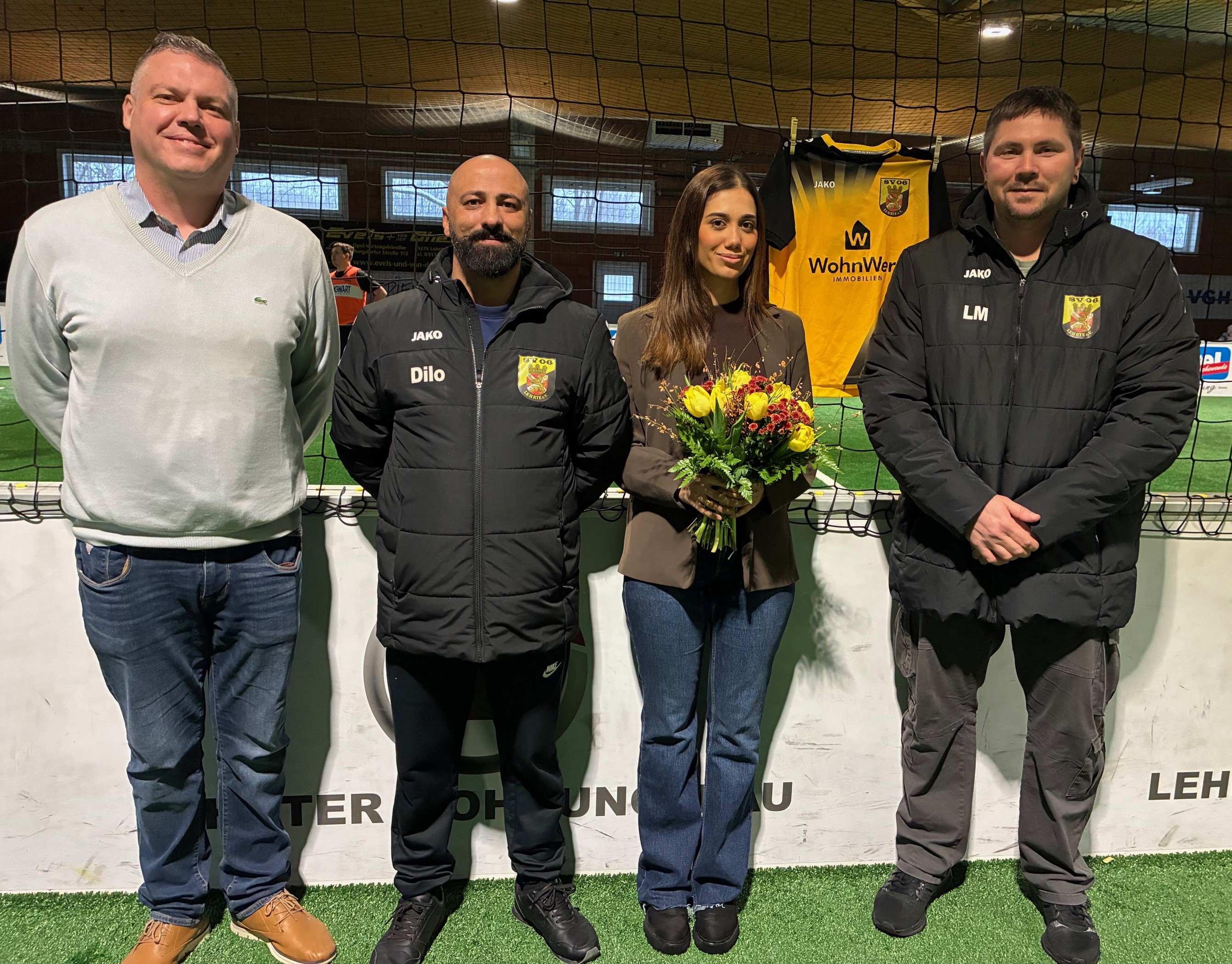 Zur Übergabe der neuen Trikots kamen Geschäftsführerin Mona Kareem-Ameen und Immobilienmakler Igor Weimer ins Vereinsheim des SV 06 Lehrte.