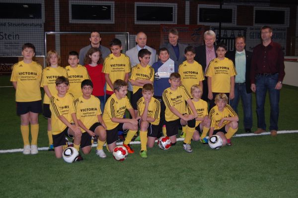 Aus den Händen von Dieter Fochler, Kommunalreferent der E.ON-Avacon konnte Jugendleiter Enrico Reckin nicht nur die Trophy, sondern auch vier Fußbälle und einen Scheck in Höhe von 2000,00 Euro entgegennehmen. „Wir werden das Geld weiterhin in den Aufbau unserer Jugendabteilung stecken“ so Enrico Reckin. „Die tollen Rahmenbedingungen mit der vorhandenen Soccerhalle machen ein professionelles Training beim kleinen Lehrter Verein möglich“ so Reckin weiter. Neben dem Kommunalreferenten der E.ON-Avacon nahmen auch Fritz Redeker (Vorsitzender), Heinz Jäckel (Jugendobmann), Hans-Joachim Götze (Lehrwart) und Manfred Finger von der Pressestelle als Vertreter des Niedersächsischen Fußballverbandes teil. Auch der Abgeordnete im Niedersächsischen Landtag, Herr Hans-Joachim Deneke-Jöhrens und der stellvertretende Bürgermeister der Stadt Lehrte, Herr Burkard Hoppe wohnten der Veranstaltung bei. Eine tolle Ehrung für den „kleinen“ SV 06 aus Lehrte.