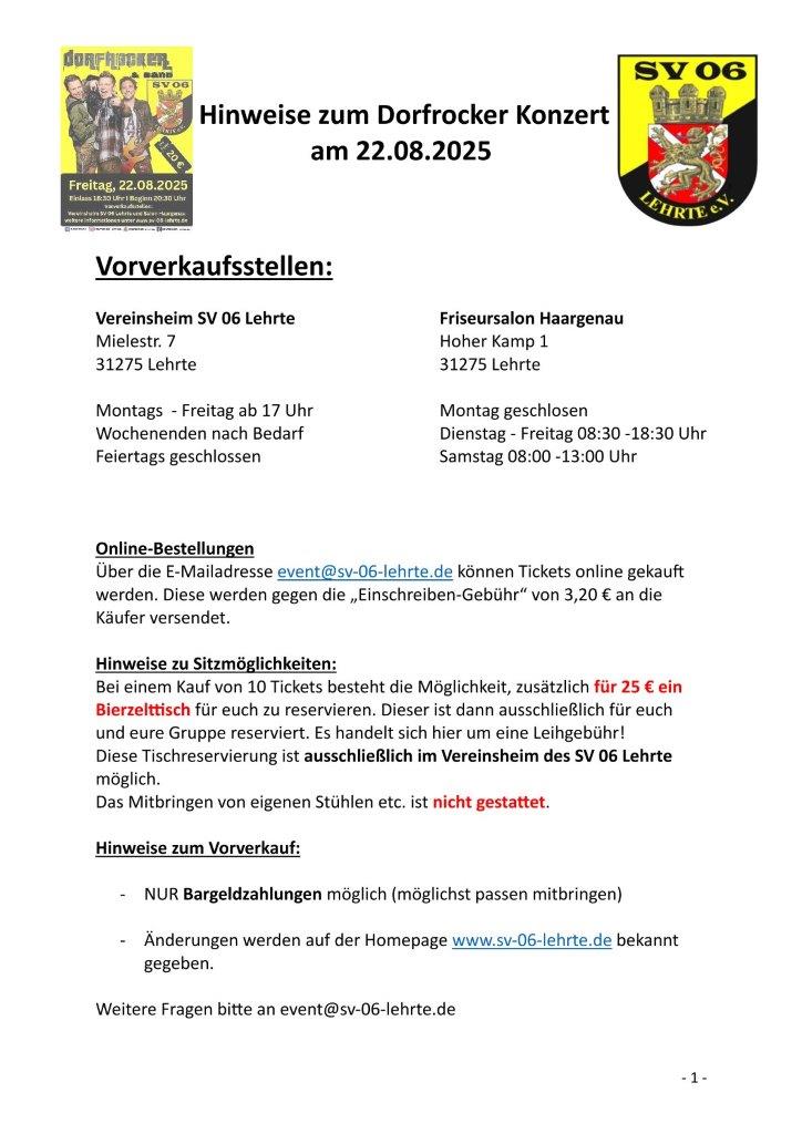 „Engelbert Strauß“ so das Einstimmungslied der Dorfrocker am Freitag, den 22. August 2025. Die tollen Jungs aus Unterfranken heizten den gut 500 Besuchern beim SV 06 Lehrte mächtig ein. In vollständiger ehrenamtlicher Arbeit hatte der Lehrter Traditionsverein seit Mittwoch alles vorbereitet. Und mal wieder hatten die Hauptorganisatoren Nina Sievers und Welf Meldau alles im Griff! „Nur durch die vielen ehrenamtlichen Hände ist ein derartiges Event für unseren kleinen Sportverein durchführbar“, so Welf Meldau. Bereits am Samstagmittag befand sich das Außengelände des SV 06 fast wieder im ursprünglichen Zustand. Und noch ein paar Worte von Nina Sievers zu der tollen Band „Die Dorfrocker“: „Ich kenne die Truppe jetzt seit 15 Jahren und habe mich riesig gefreut, dass sie nun endlich in Lehrte aufgetreten sind. Das ganze Drumherum hat hervorragend gepasst. Die Band hatte die Bühne selbst mitgebracht und zusammen mit Helfern des SV 06 auf- und abgebaut. DANKE nochmal an alle Sponsoren, Unterstützer/innen und Helfer/innen“.